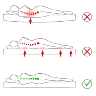 Il materasso non accoglie le curve naturali del corpo. Spalle e bacino non affondano quel tanto che basta per mantenere la colonna allineata.